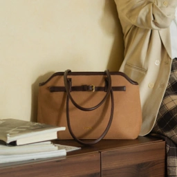 Hadir dengan perpaduan material kanvas premium dan aksen kulit sintetis, tersedia dalam tiga pilihan warna bumi yang hangat: black, espresso, dan latte.